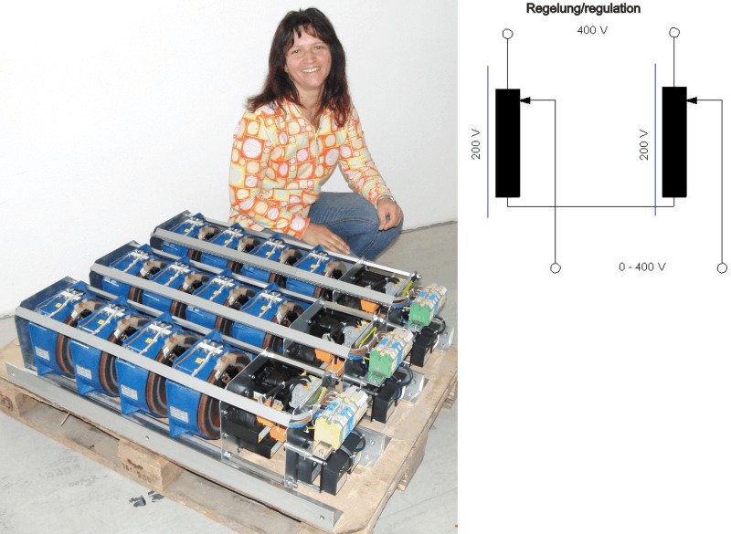 Für unser Labor brauchen wir einen dreiphasigen Regeltransformator mit mindestens 60 kVA Leistung. Der Stelltrafo soll luftgekühlt sein und über einen Stellmotor angetrieben werden. Die Ausgangsspannung muss von 0 auf 400 V stufenlos einstellbar sein. Der maximale Strom von 90 A soll bei jeder beliebigen Spannungseinstellung dreiphasig fließen können. Da die Bauhöhe begrenzt ist, ist eine möglichst kleine Höhe notwendig. Die Absicherung muss mit 100 A möglich sein.
